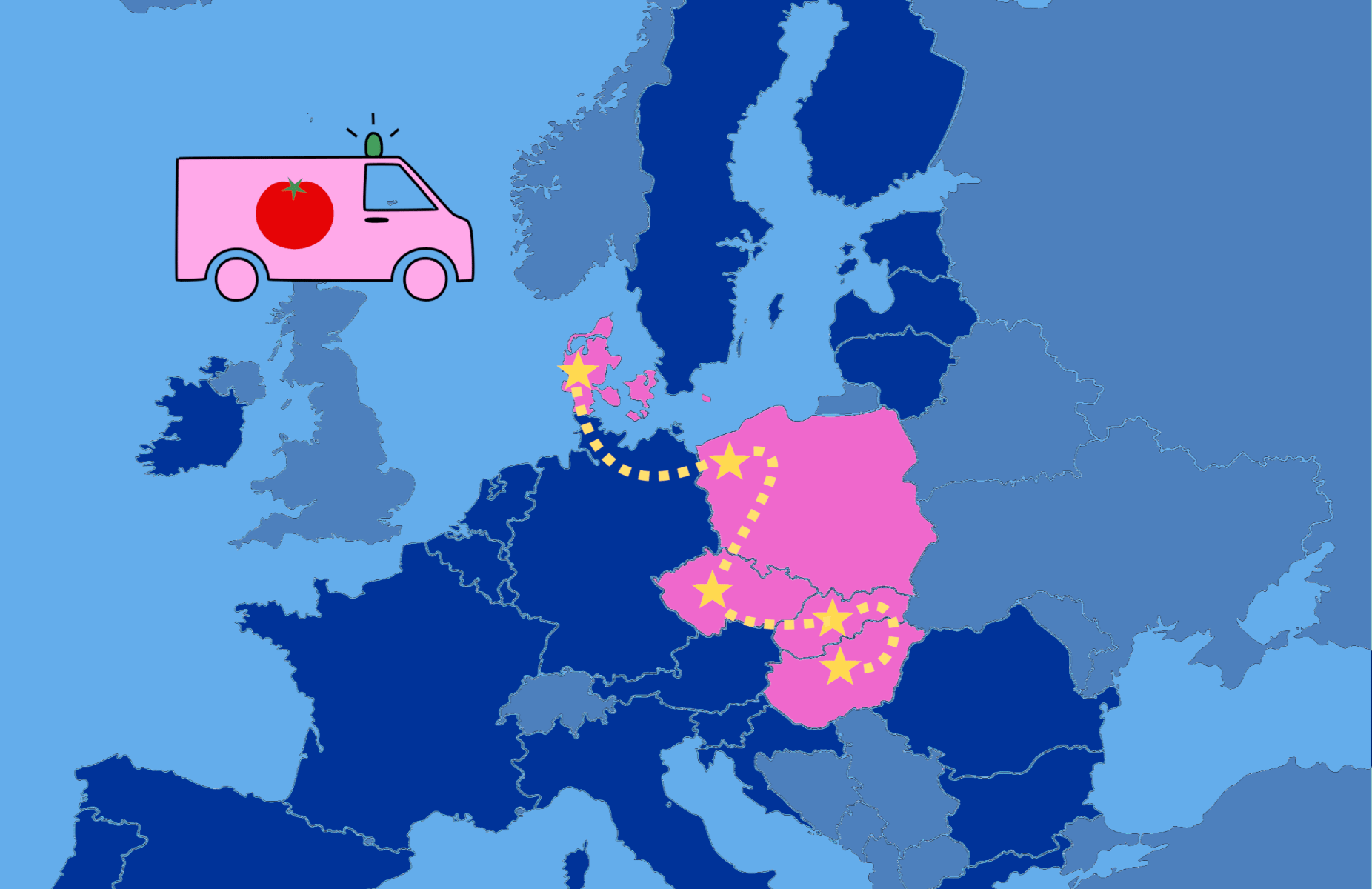 We will tour on board of our Artbulance in 4 European countries in October 2021 and we will export THE ART PARTY community based performance project model, with a special dedication to the Visegrad area (Poland, Czech Republic, Slovakia and Hungary). We will reflect on the importance of the healthy democratic values and on the integrity of Europe by this tour starting from South Denmark and finishing in Central Europe.Â